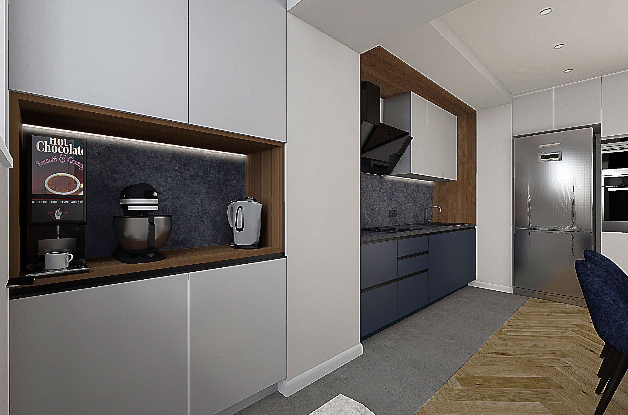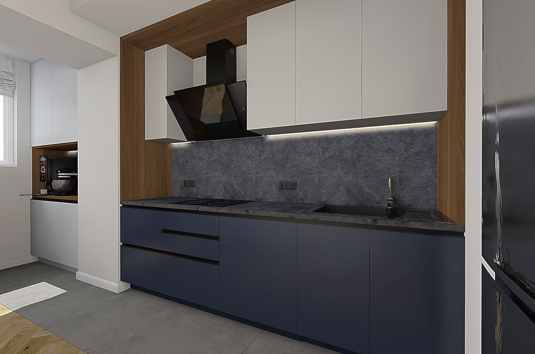 Спочатку ми організували кухню-студію. Згодом відпрацюємо проєкт вхідної зони та приватних приміщень.
