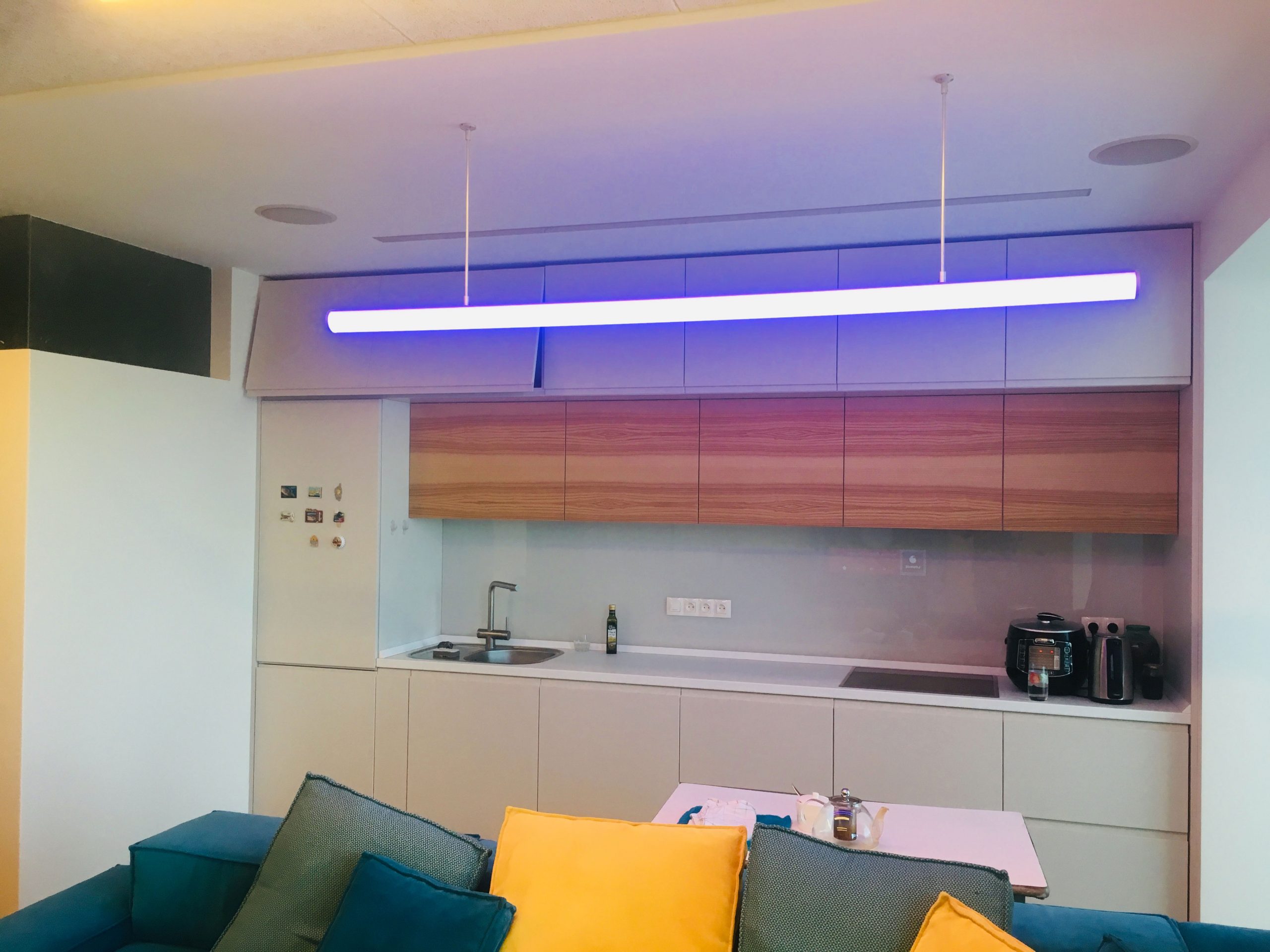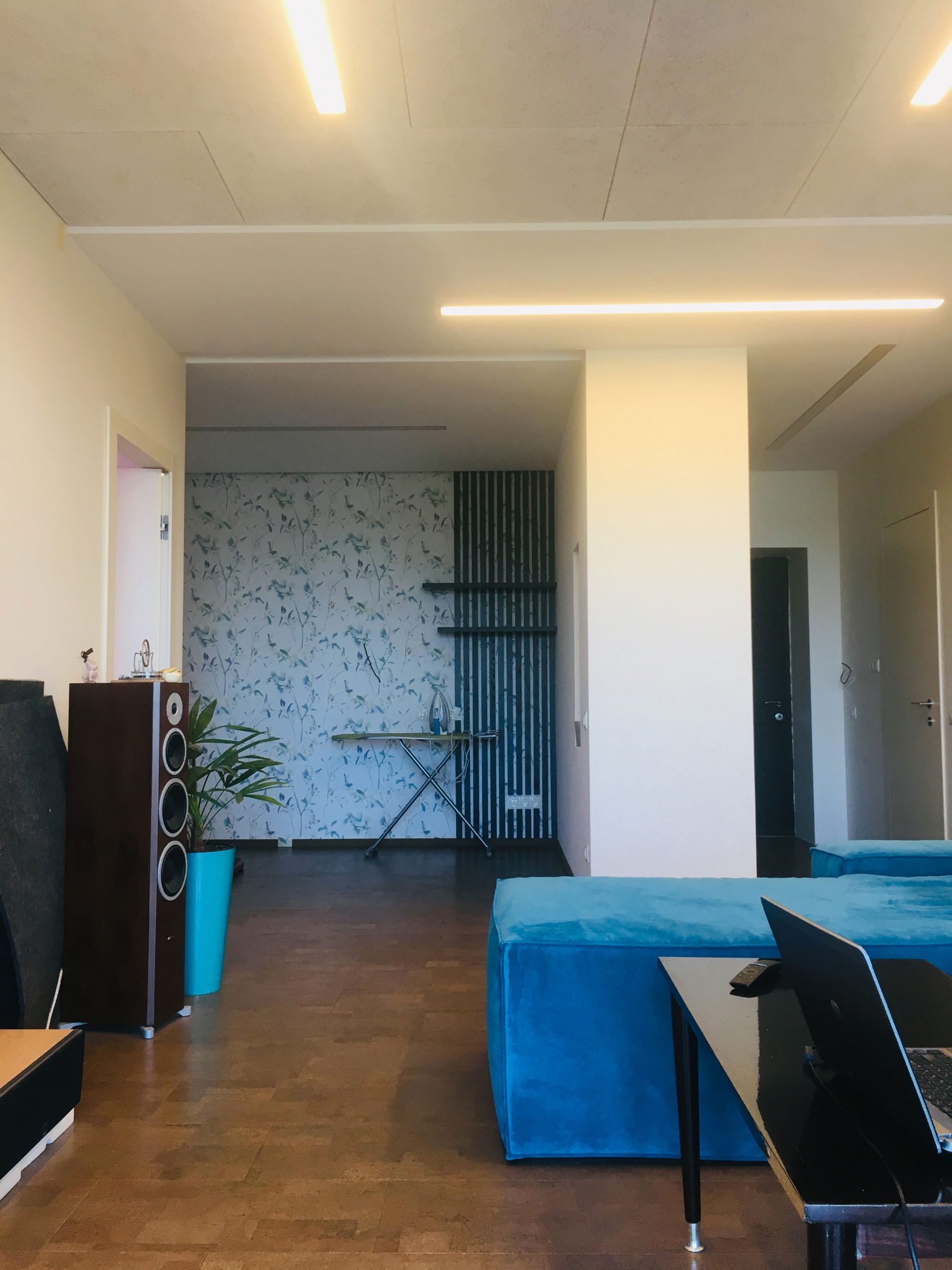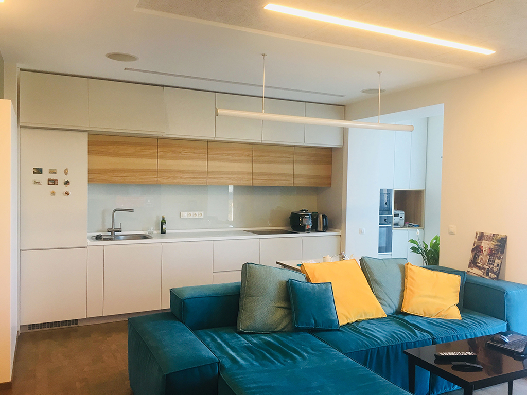 Функціональність – перший і головний вектор цього інтер’єру. Основною його особливістю є декорування стін фотошпалерами та автентичні меблі в студії, які власник виробив власноруч за нашими ескізами.
