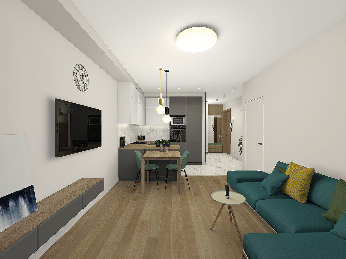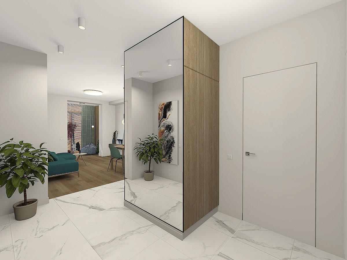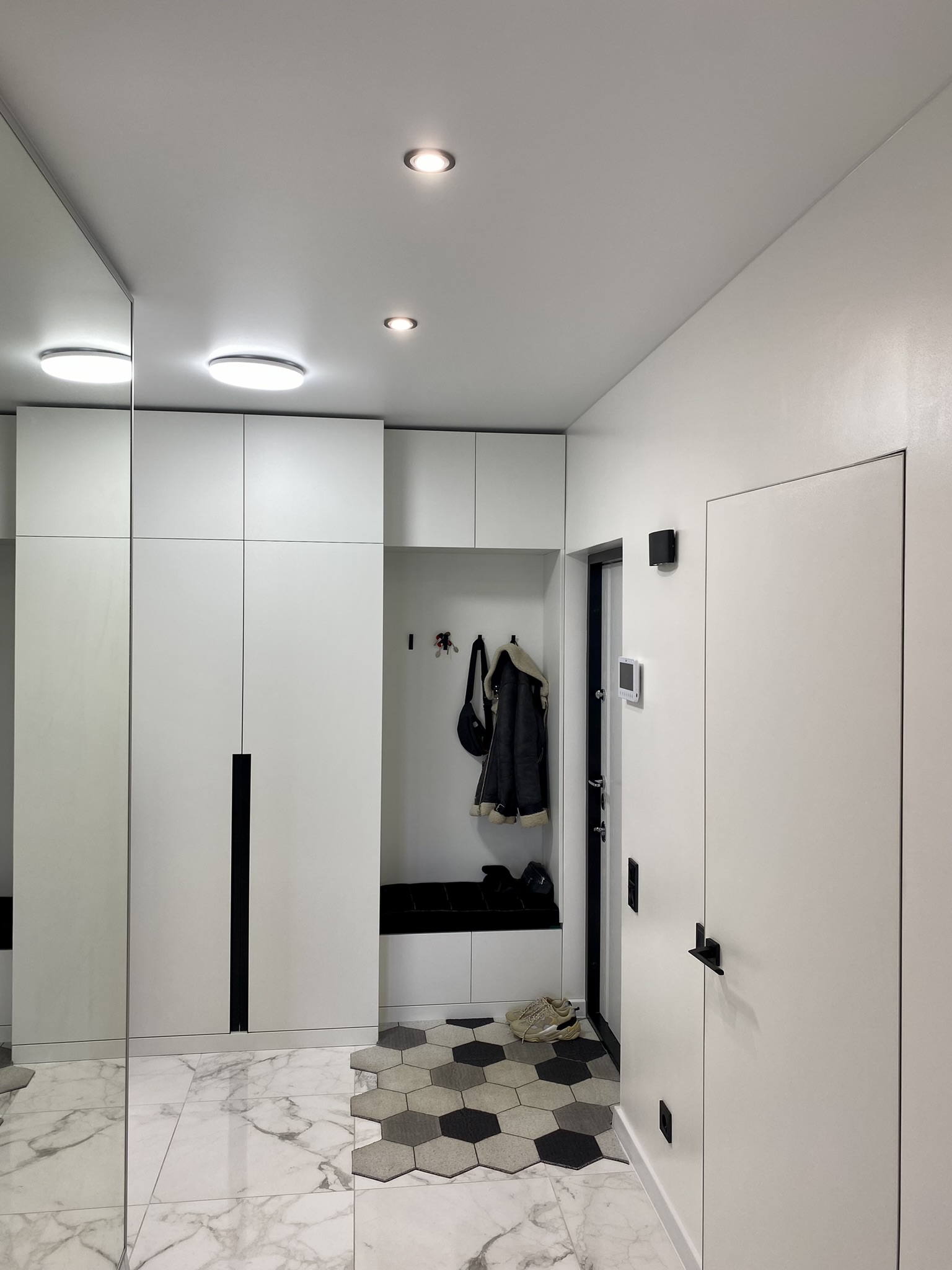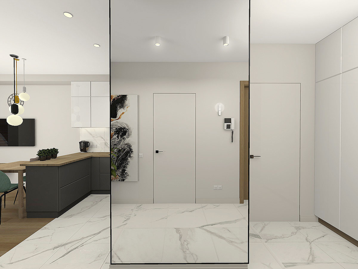Максимально багато повітря. Багато систем зберігання. Мінімалізм і функціоналізм. Нічого зайвого, важлива кожна деталь. Інтер’єр для молодої людини, що розкриває її світогляд. Інтер’єр, максимально реалізований за дизайн-проєктом.