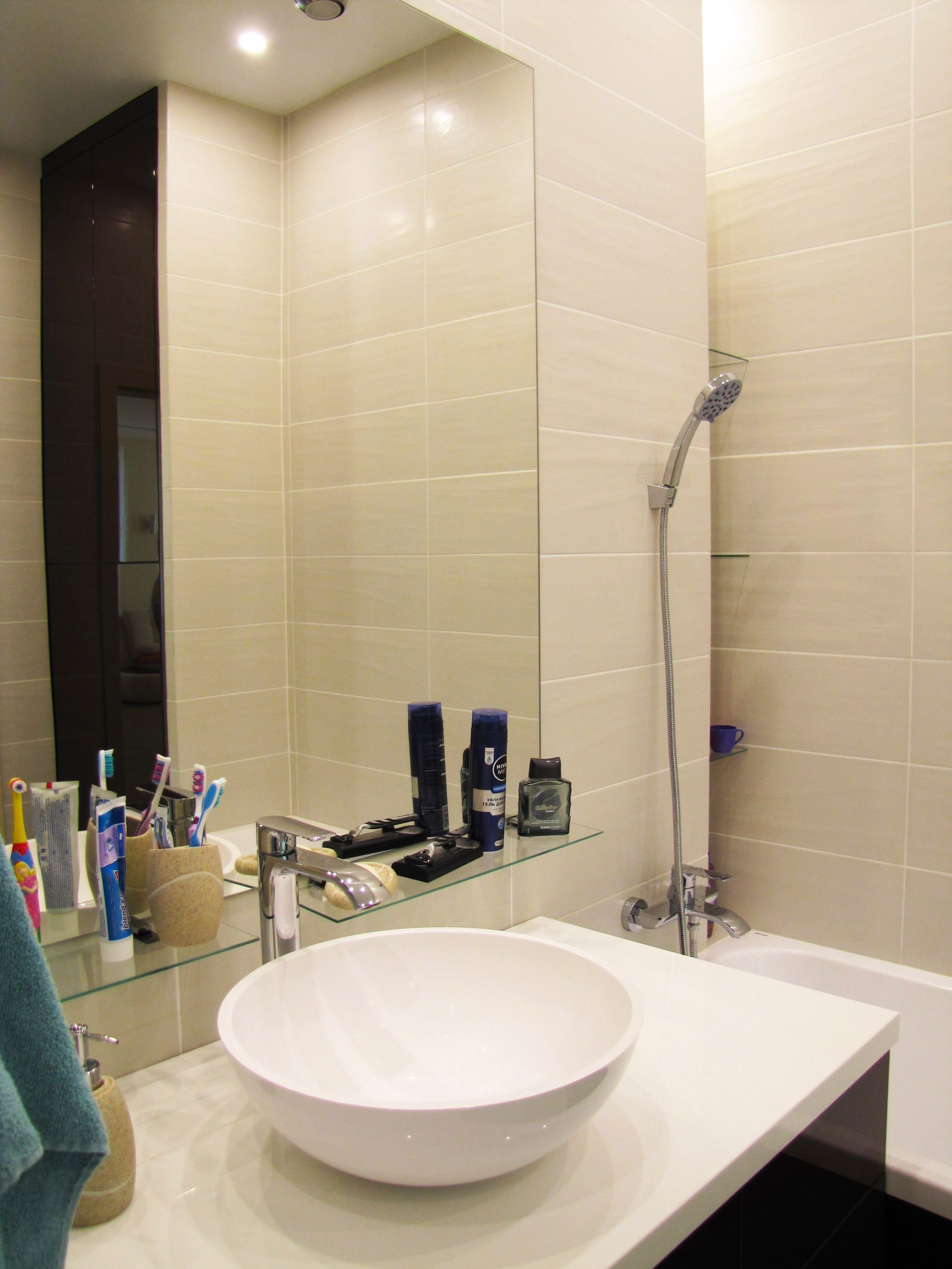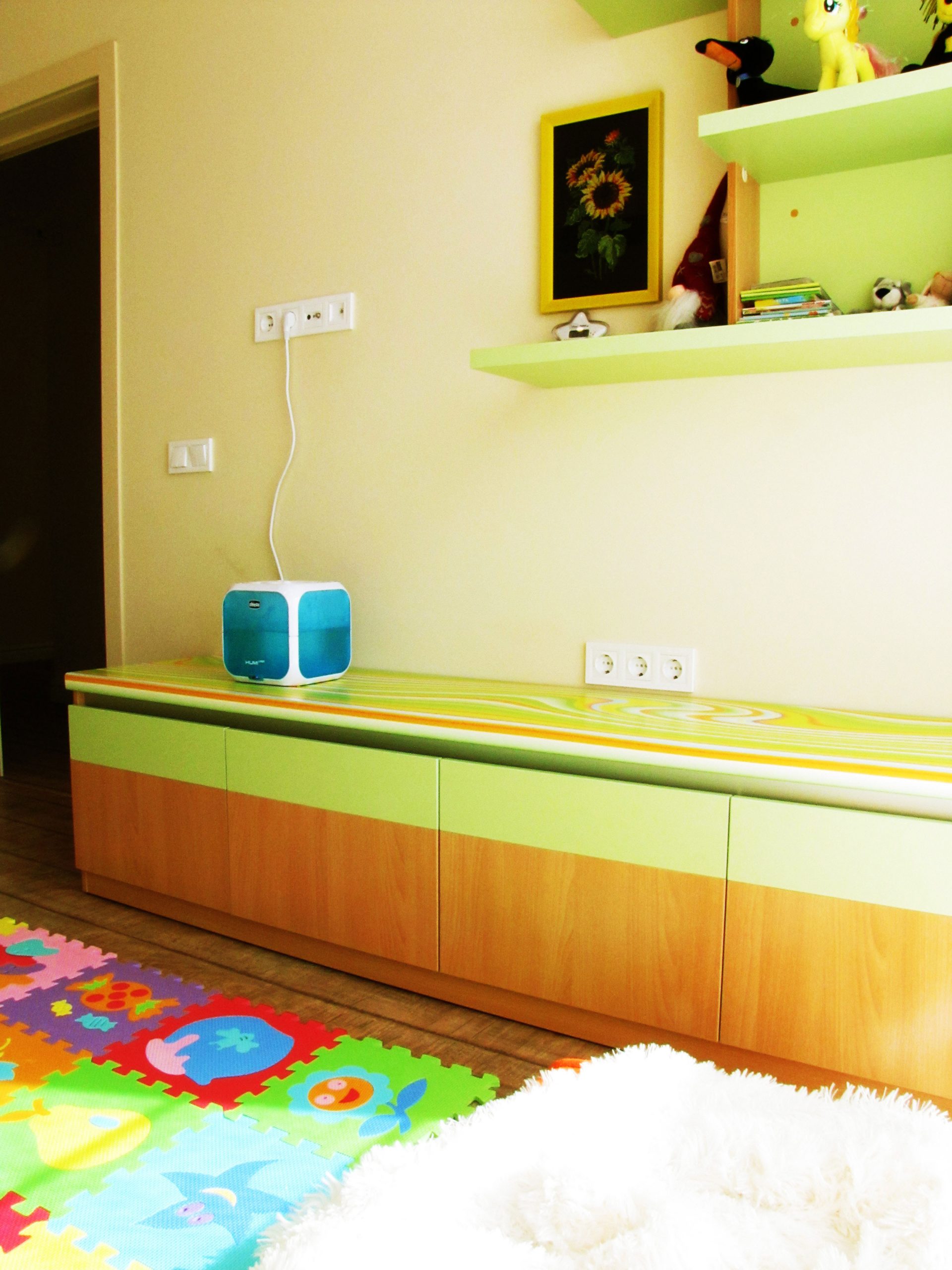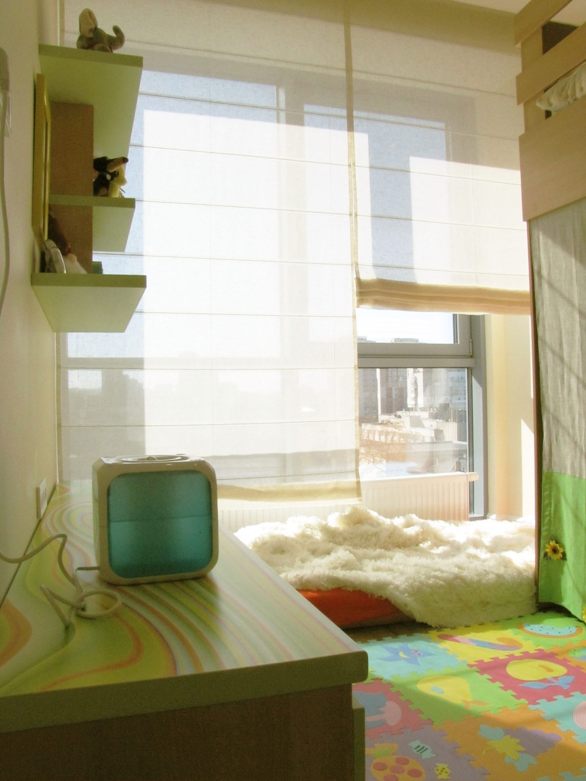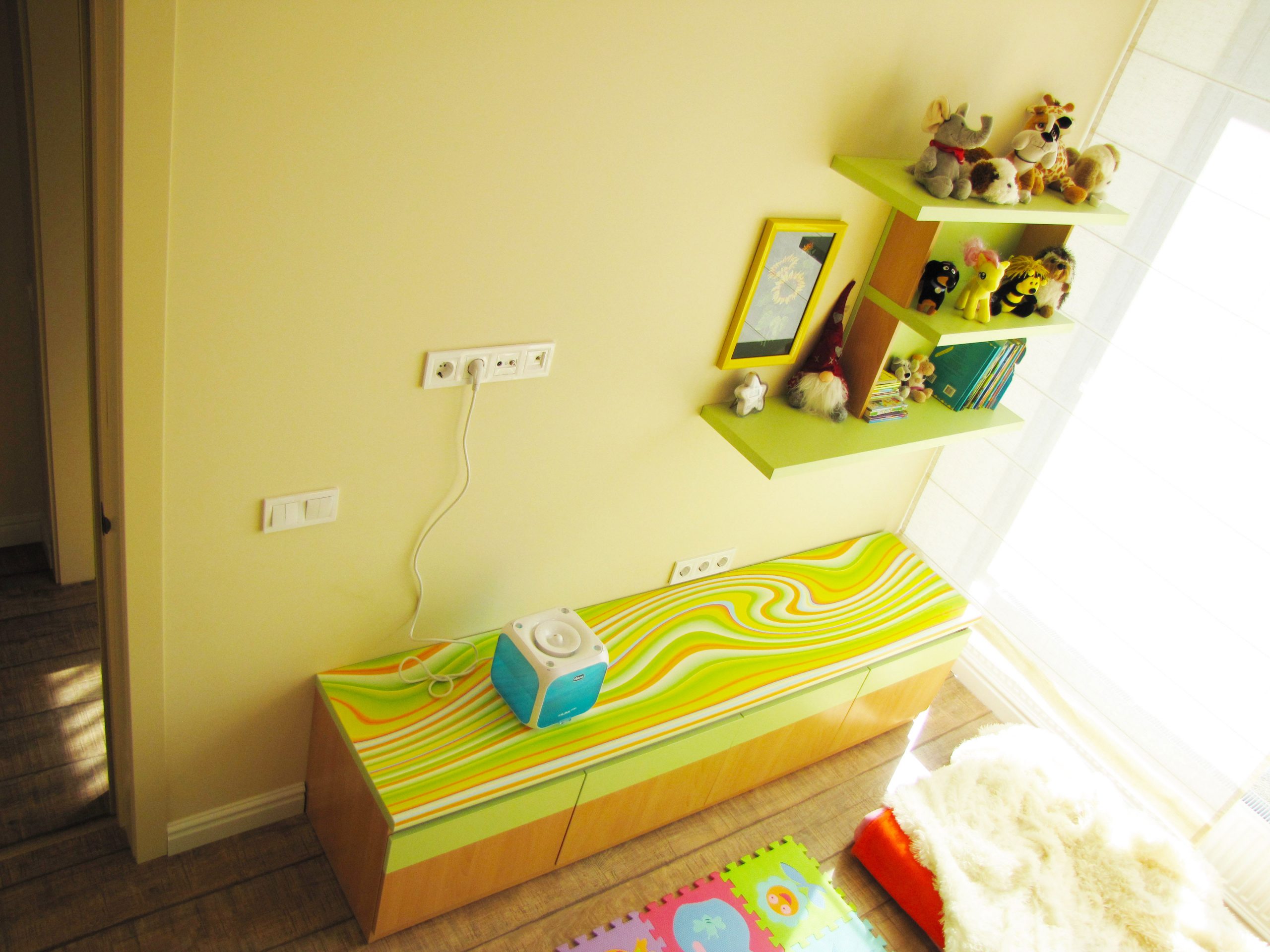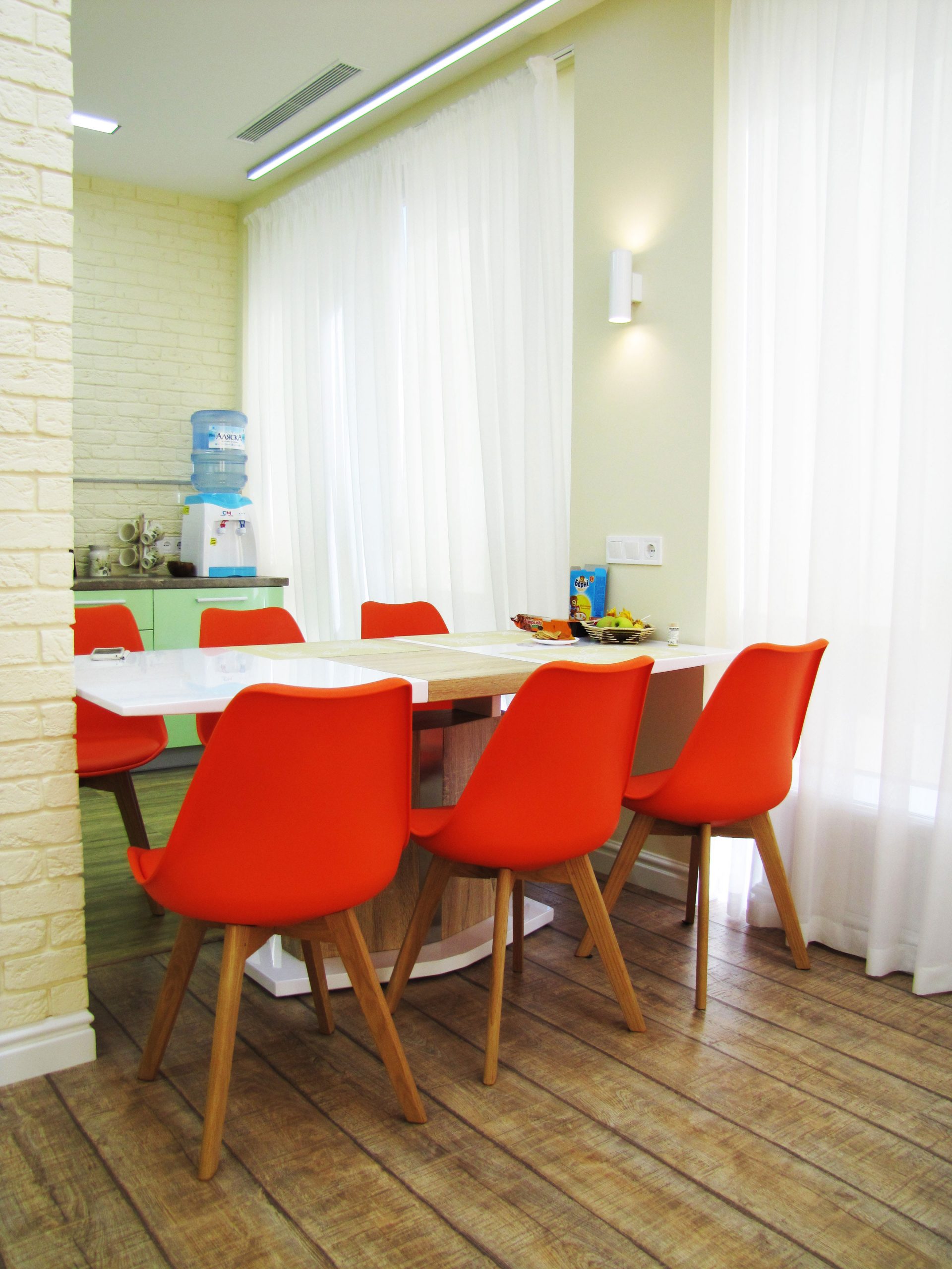 На порівняно невеликій площі необхідно було розмістити студію з кухнею та обідньою зоною, господарську спальню, дитячу, гостьовий санвузол і майстер-ванну, пральну кімнату та гардероб. Суворий функціоналізм, проста геометрія ліній, світла кольорова гама та акценти на фактурах – основні побажання замовників. У дитячій господарі просили створити ефект казкового світу.