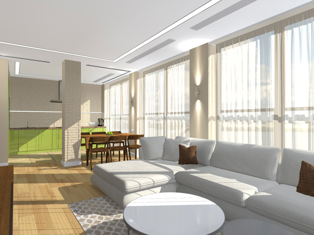 Локація: ЖК “Фестивальний”, вул. Січеславська Набережна, 45, м. Дніпро Проєкт: 2016 р. Реалізація: 2017 р. S = 87,35 кв. м