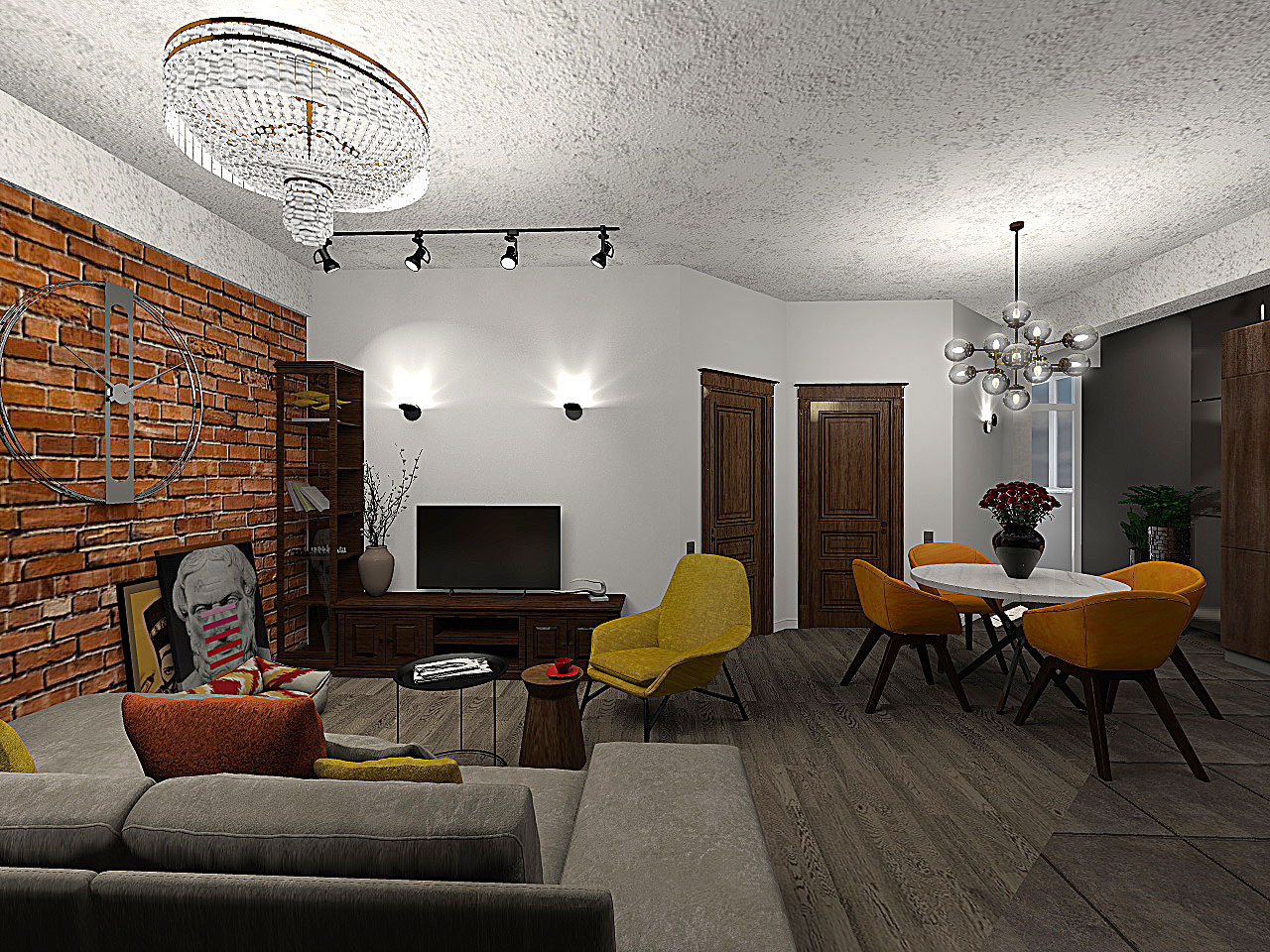 Локація: ЖК “ULDUZ”, вул. Робоча, 166-д, м. Дніпро Проєкт: 2018 р. Реалізація: 2019 р. S = 100 кв. м