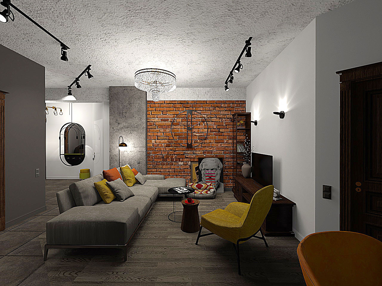 Поєднання класичних старовинних предметів декору та натуральних сучасних оздоблювальних матеріалів створило неповторний інтер’єр квартири у стилі гранж.
